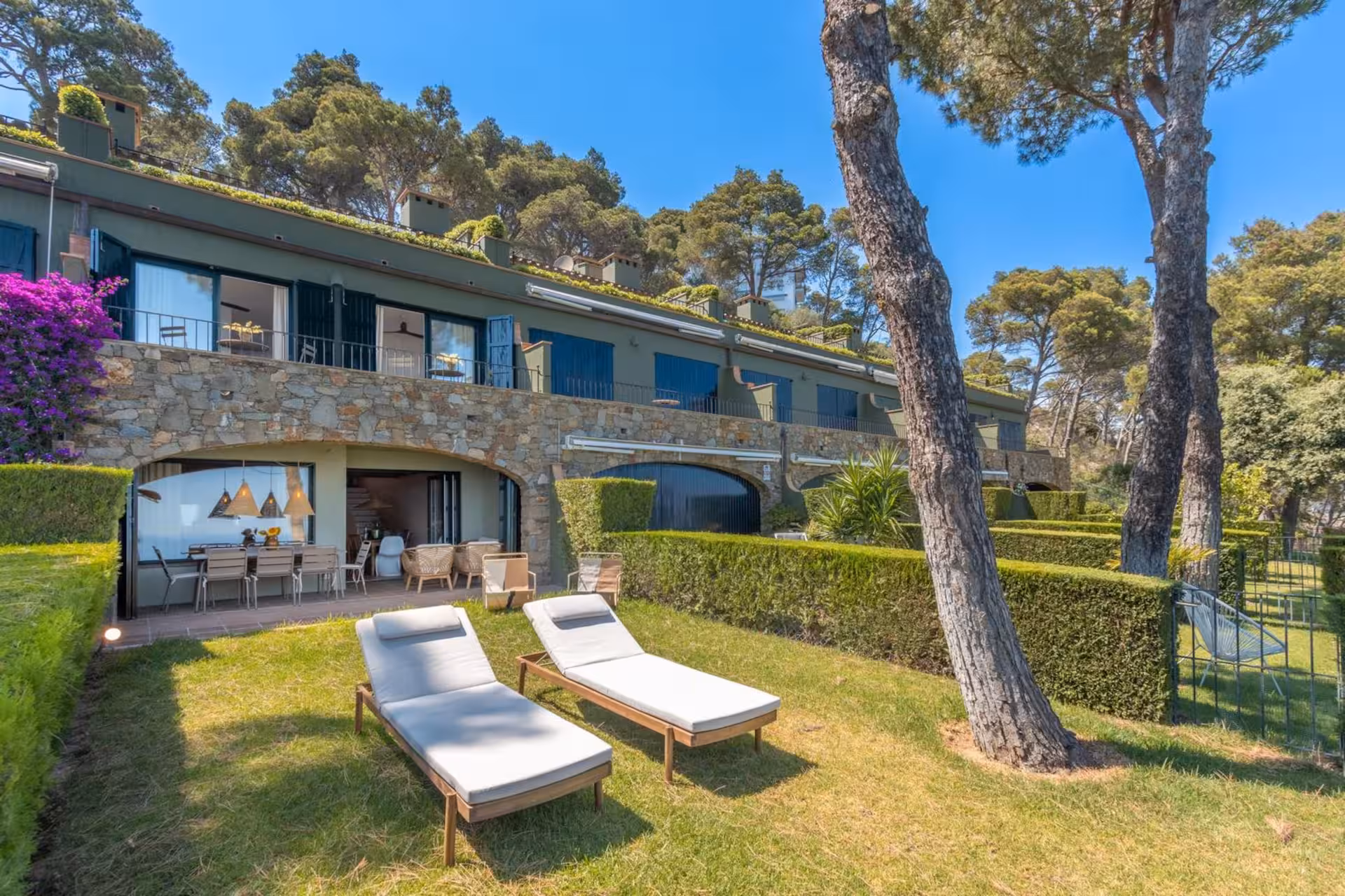 Enjoy panoramic sea views from private terraces and a landscaped garden, along with access to a shared swimming pool and a private garage for two cars. Ideally located near the most beautiful beaches, coves, golf courses, and charming villages of the Costa Brava, this villa is the perfect base for an unforgettable stay.